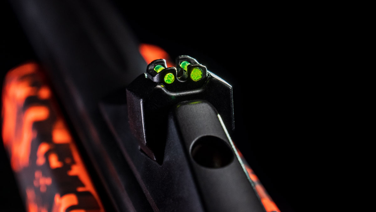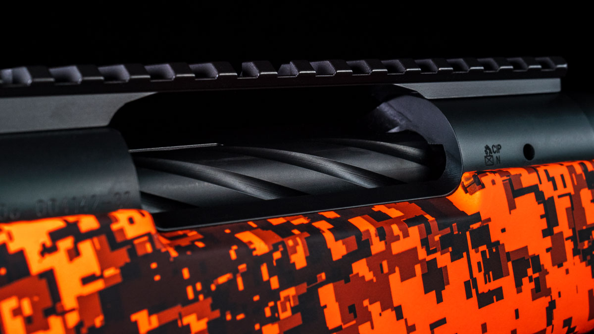 Con sólo 150 unidades para todo el mundo, este modelo sobresale por el color de su culata. Aprovechando la campaña de #Naranjaescaza, Bergara nos sorprende con un camuflaje pixelado de alta visibilidad, que complementa con el conjunto de cañón y acción con un acabado en Cerakote negro que da un aspecto elegante y funcional.