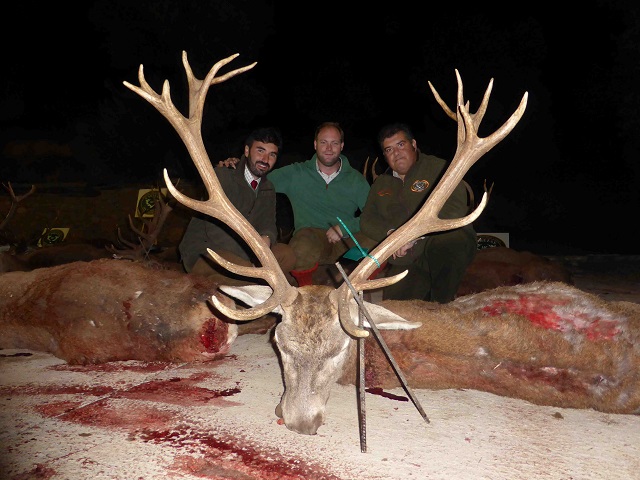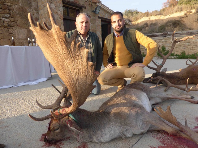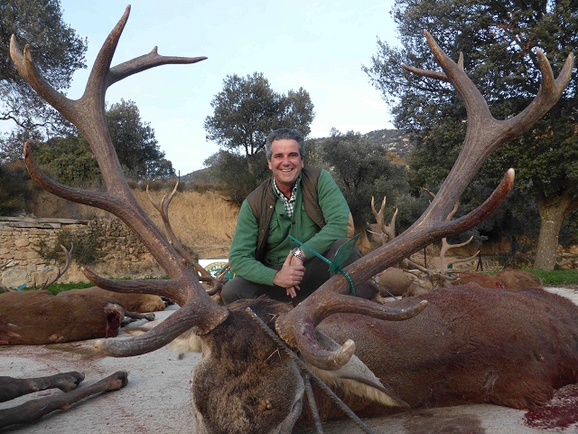 Los puestos todos ubicados en amplias torretas, con grandes tiraderos desde los que poder gozar de magnificas carreras, poder ver gran parte de la montería, haciendo que los monteros pudiesen disfrutar también de los lances de otros participantes. A las 11:00 en punto estarían todos los cazadores ubicados en sus posturas, en las que nada más llegar muchos de ellos empezarían a ver un chorreado y constante paso de venados, gamos, muflones y jabalíes que serian la locura de muchos de los asistentes. A las 11:15 de la mañana y con apenas 15 minutos en el puesto 3 monteros ante tal cantidad y calidad de animales no pudieron contenerse, haciendo su cupo con reses y jabalíes de una calidad muy importante. Por lo que sin apenas soltar las rehalas ya se escucharía por las emisoras; el 6 de la central tiene el cupo echo, el 3 de la charca tiene el cupo echo y otros muchos con una o dos piezas de sus cupos. Por lo que el presagio de lo que podría depararnos el día ya empezábamos a imaginárnoslo. Con la suelta de las rehalas que batirían las más de 500 hectáreas de monte, barranquitos y pedrizas con que cuenta esta mancha de la casa, se produciría un constante y choreado tiroteo que iría completando los cupos de muchos de los monteros.