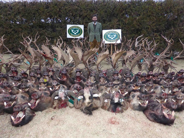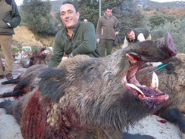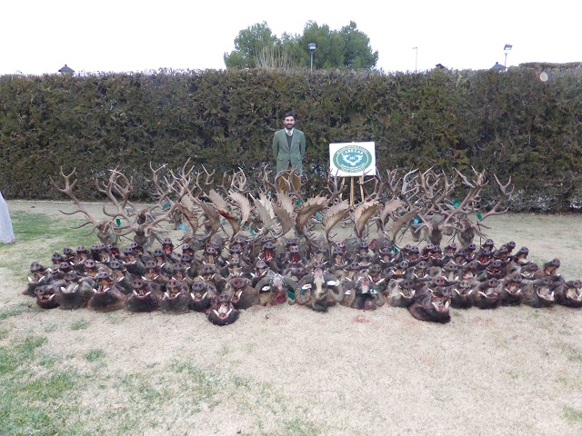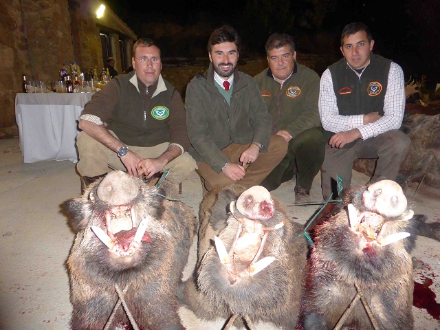 Antes de comer estaría formado parte del platel, que haría que muchos de los asistentes no pasasen ni al catering, contemplando la grandeza y belleza de muchos de los grandes jabalíes cobrados. Hay que decir que todos los jabalíes cobrados serian grandes machos de boca, de ellos, 35 ó 40 no hizo falta ni medirlos ya que a simple vista se apreciarían los impresionantes grosores de muchos de los jabalíes de hasta 3,2 cm (todo un espectáculo). En cuanto a las reses se refiere, destacaban 5 orazos, 2 ó 3 gamos de mas de 200 puntos CIC y varios venados de entre 170 y 190 puntos. Formando este un plantel de los que crean afición y nos hacen pensar en la siguiente montería.
