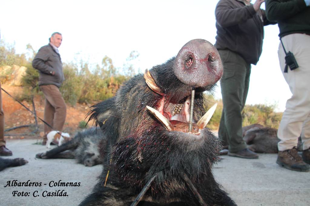 Sobre las doce y media se soltaban las rehalas, y ya antes de la suelta se había producido algún lance y se tenía conocimiento del abatimiento de un gran jabalí que intentaba abandonar la “zona de quema”. Como siempre, estos astutos animales llegan a viejos por lo sabios que son, y seguramente, en más de una ocasión, se había librado de ser cazado por apremiar a la hora de salirse de la mancha, pero esta vez se encontró con el certero disparo del montero, que ya aguardaba en su postura.