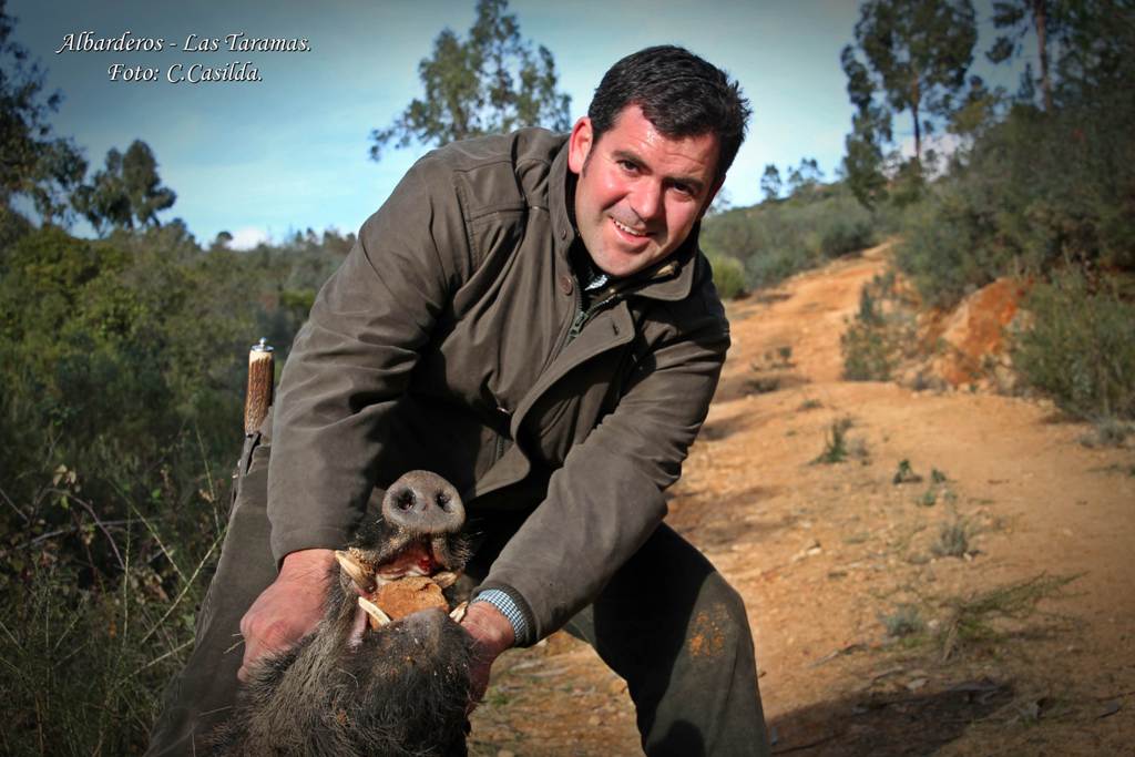 La mancha en cuestión, la conocida como ‘Las Taramas’, está formada de una sierra que, desde que besa el cortijo, se va perdiendo hacia el río, con un fuerte y apretado monte espeso de jaras viejas, brezos y terrazos de pino y eucalipto. Lugar perfecto para el encame y refugio de los cochinos. Los tiraderos eran de extrema dificultad, constando de lo que coge un camino en la mayoría de los casos; algún acero en el mejor de ellos y testeros inmensos en los que el alto monte impedía ver con claridad los escurridizos cochinos que, perseguidos por los canes, surcaban el mar de jaras sin ser exactamente localizados.
