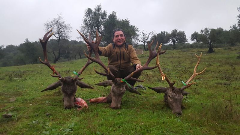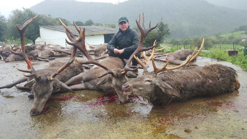 Desde antes de soltar se pudieron escuchar los disparos repartidos por las distintas posturas. La montería duró poco, por el mal día, pero no hubo tiempo para aburrirse. El más afortunado sin duda fue Diego Romero, de Alanís, que se hacía con el venado de la jornada, con 17 puntas y pendiente de homologación. José Romero Adame, de Villanueva de la Serena, también fue sonreído por la suerte con un bonito venado de 15 puntas. También afortunada la postura que ocupaban los hermanos Infante, que se hicieron con cuatro venados de los cinco que le entraron. En fin, un buen día aunque pasado por agua, entre amigos. Una despedida inolvidable para los accionistas de esta organización.