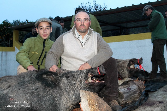 Antonio Pinilla JR conseguía un par de jabalíes; también el amigo Sastre conseguía hacerse con otro, un servidor con la cochina, Francisco Carretero con otra enorme cochina, el amigo casi sigue con su racha… En fin, la suerte sed repartió entre los allí presentes.