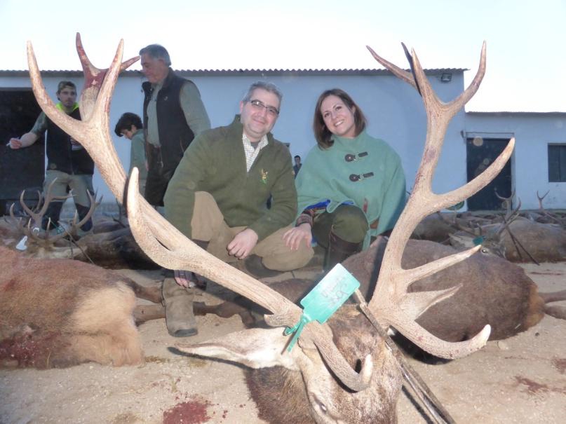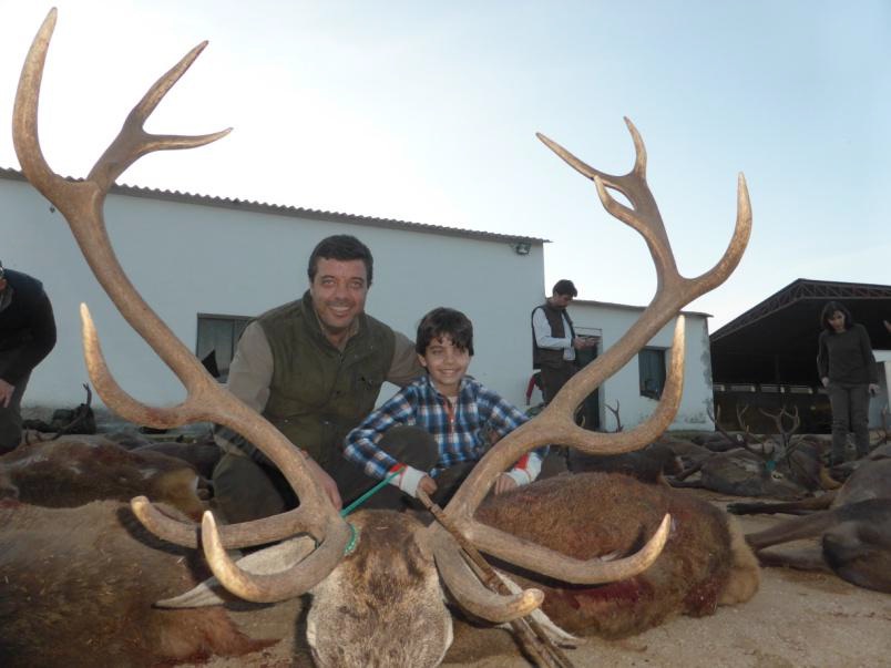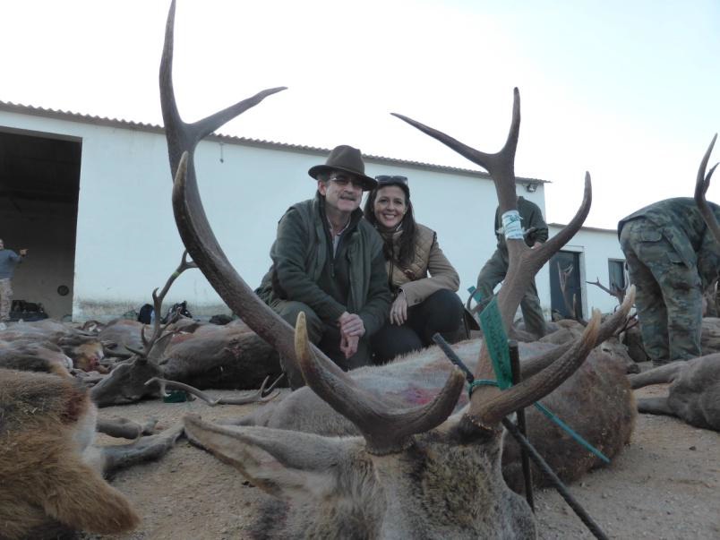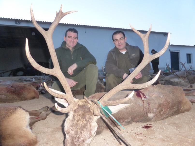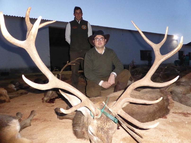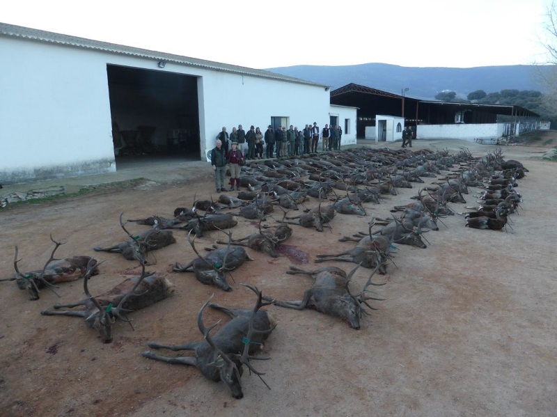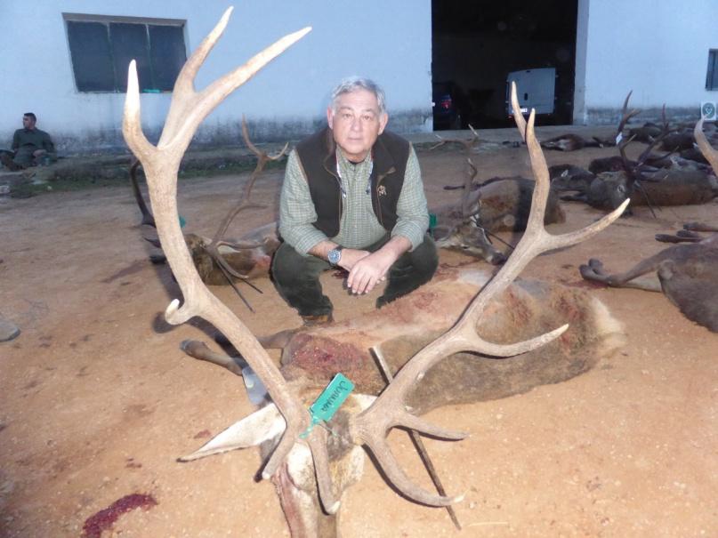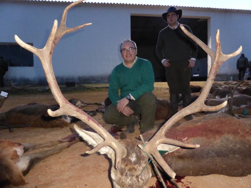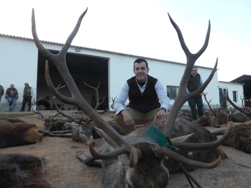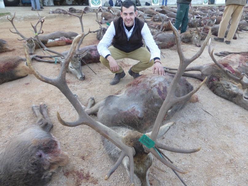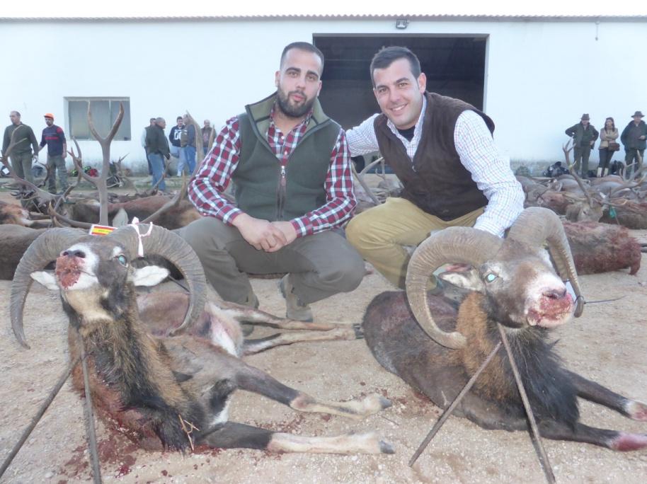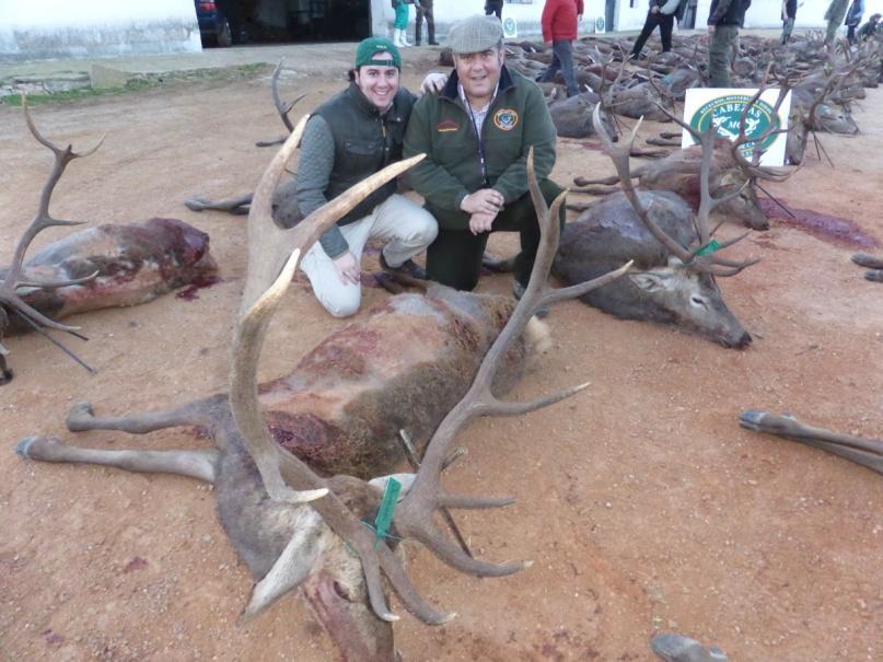Nada más empezar a ubicarse los cierres ya empezarían estos a tirar las primeras reses, que viendo el tránsito de coches empezarían a querer abandonar la mancha. Siendo en vano, ya que la mancha se cerraría con celeridad y eficacia. A las 11:00 de la mañana comenzaría la batida, siendo el número de reses muy alto en la mancha, por lo que muchos puestos intentarían seleccionar los venados sobre los que poner la cruz. La armada de «Los Bodegones» disfrutaría de lo lindo ya que los secretarios contabilizarían más de 50 venados vistos en cada uno de los puestos. La montería transcurriría con un número muy alto de lances y carreras, ya que también se podrían abatir hembras. Al final de la jornada disfrutaríamos de un impresionante plantel en el que resaltaría la cantidad de animales, con varios venados muy bonitos y una docena de muflones que pondrían la guinda a un tapete formado por: 63 venados, 82 ciervas, 12 muflones y 5 jabalíes. En total, 163 piezas que nos dejarían pensando qué nos depararía la jornada siguiente en la finca Los Castaños. En resumidas cuentas, un soleado día de montería en el que reinaría el buen ambiente y la caza uniría nuevas amistades. Muchas gracias a todos los participantes así como a la propiedad del Allozar por sus atenciones con todos los asistentes.