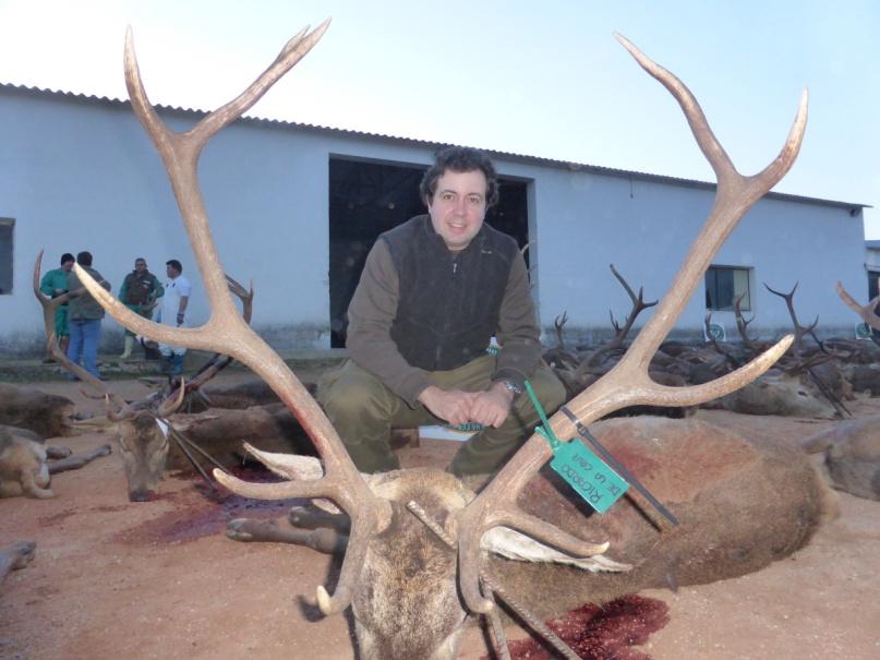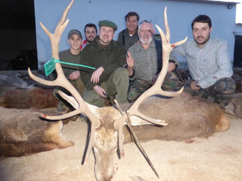Nada más empezar a ubicarse los cierres ya empezarían estos a tirar las primeras reses, que viendo el tránsito de coches empezarían a querer abandonar la mancha. Siendo en vano, ya que la mancha se cerraría con celeridad y eficacia. A las 11:00 de la mañana comenzaría la batida, siendo el número de reses muy alto en la mancha, por lo que muchos puestos intentarían seleccionar los venados sobre los que poner la cruz. La armada de «Los Bodegones» disfrutaría de lo lindo ya que los secretarios contabilizarían más de 50 venados vistos en cada uno de los puestos. La montería transcurriría con un número muy alto de lances y carreras, ya que también se podrían abatir hembras. Al final de la jornada disfrutaríamos de un impresionante plantel en el que resaltaría la cantidad de animales, con varios venados muy bonitos y una docena de muflones que pondrían la guinda a un tapete formado por: 63 venados, 82 ciervas, 12 muflones y 5 jabalíes. En total, 163 piezas que nos dejarían pensando qué nos depararía la jornada siguiente en la finca Los Castaños. En resumidas cuentas, un soleado día de montería en el que reinaría el buen ambiente y la caza uniría nuevas amistades. Muchas gracias a todos los participantes así como a la propiedad del Allozar por sus atenciones con todos los asistentes.