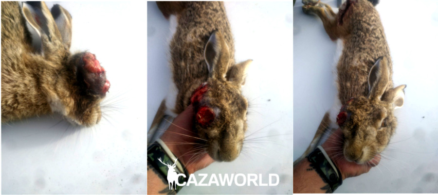 Si el problema de la mortandad de liebres no fuese suficiente, estos cazadores encontraron en diciembre un ejemplar de liebre con un extraño quiste encima de uno de sus ojos que no habían visto antes y que a día de hoy no han podido determinar qué tipo de tumor o enfermedad le ocasionó esa extraña malformación.