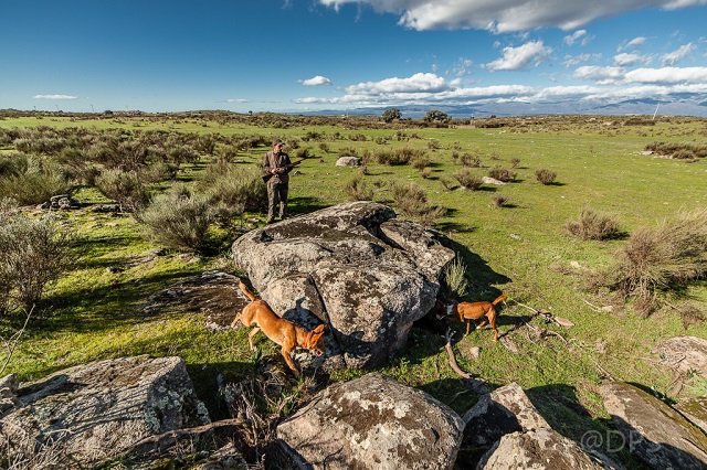 El primero lo detectaron en una piedra. Con sus cambios de ritmo y ese rabeo característico nos marcaban que la pieza estaba cerca, pero estos podencos a veces se pegan tanto a la caza que no nos dan opción al tiro, y así escapó el primer conejo de la mañana con los perros pegados al rabo.