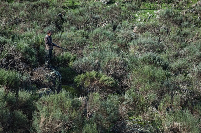 El siguiente lance lo protagonizó el talla chica marcándolo en una zarza. Nos colocamos para cubrir en la medida de lo posible las salidas del lagomorfo pero, como suele pasar, este fue más listo y nos la jugó pegándose a la zarza y dando poca opción al disparo.
