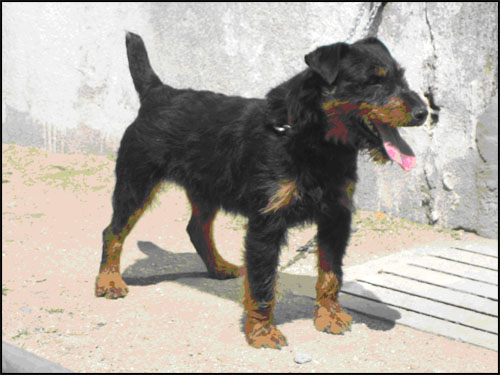 Si, una perra Jagd Terrier que utilizo para la mayor aunque me ha demostrado que también le gustan los conejos y perdices pero sin duda donde muestra su valentía y olfato es en la caza Mayor.