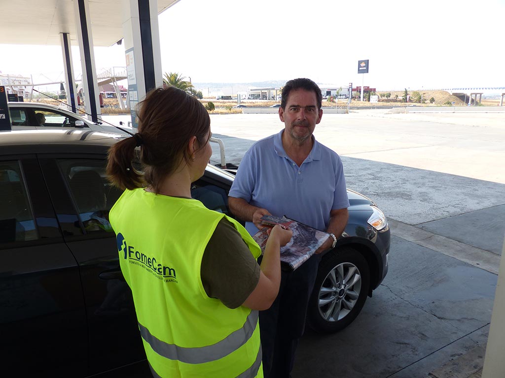 Durante la jornada de concienciación, técnicos del proyecto Life+Iberlince en colaboración con la Junta de Comunidades de Castilla-La Mancha, han informado a los conductores sobre la importancia de respetar los límites de velocidad y reducir la velocidad en zonas concretas de paso de fauna.