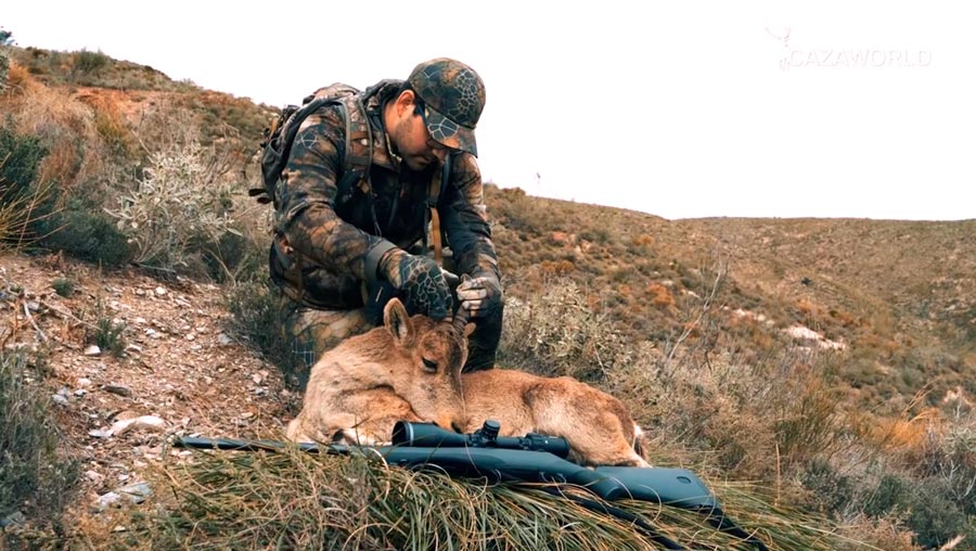 Hembra de cabra montés cazada por gestión durante la prueba de un Mauser M18.