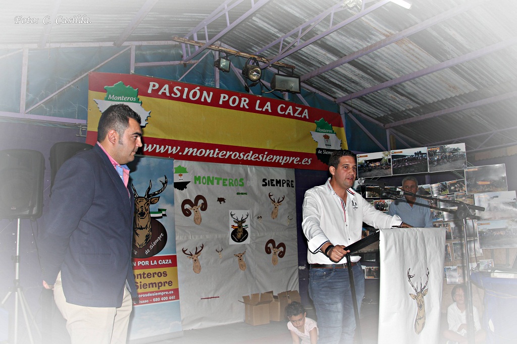 Sobre las 22:30 comenzó la cena y tras la misma vino el acto en sí, tomando Isaac Álvarez la palabra para agradecer la asistencia a todos los allí presentes. Tras la bienvenida, Jocaex hizo entrega de unas camisetas para los niños e Isaac Álvarez dio paso a Carlos Casilda, que en representación de Juvenex hizo entrega un año más de su galardón a un joven cazador que, por sus méritos y trayectoria, practicando la caza de una manera ética y de conservación, había mostrado unas cualidades dignas de admirar. Este año fue a parar a Silvia Lucas Bedia, que viendo que la administración había podido con su padre, quien le había inculcado el amor por la caza en general, por los perros en particular y por todo lo que rodea el mundo del campo, le echó el resto y tiró para adelante con una rehala que estaba avocada a su desaparición. Silvia recogió el galardón emocionada de la mano de Carlos Casilda y agradeció a Juvenex y a Monteros de Siempre el detalle.